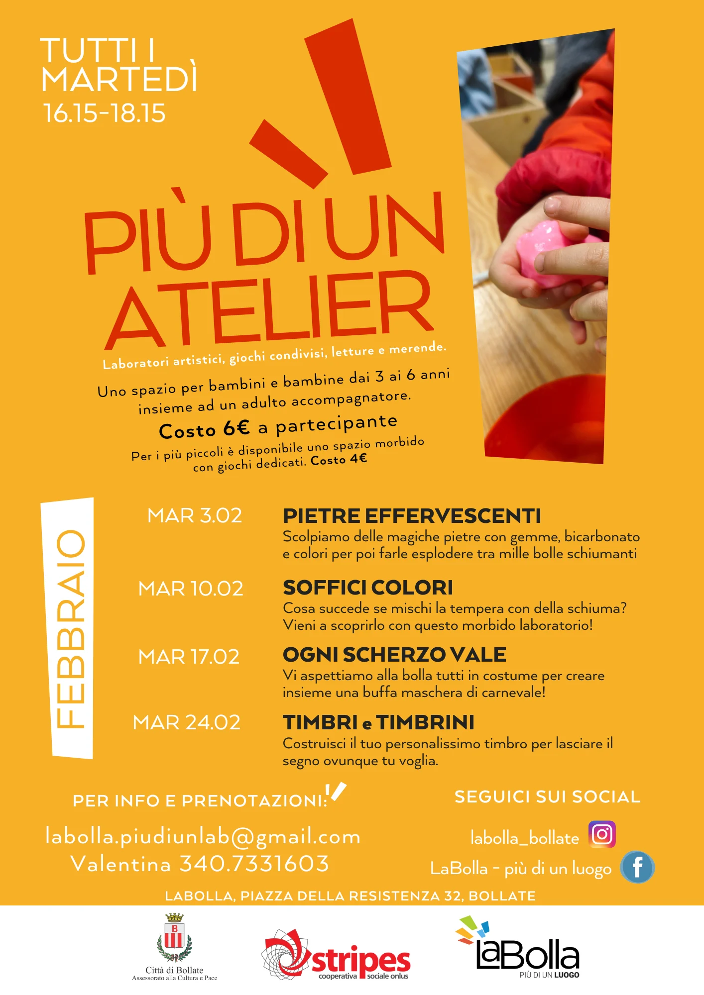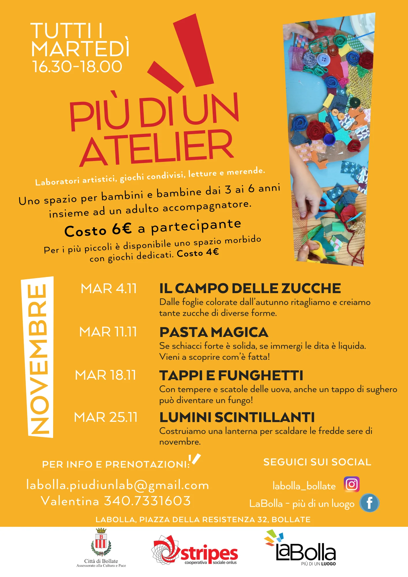 Torna Più di un Atelier: Laboratori artistici e ludici, letture e merende per bambini e bambine dai 3 ai 6 anni insieme ad un adulto accompagnatore!